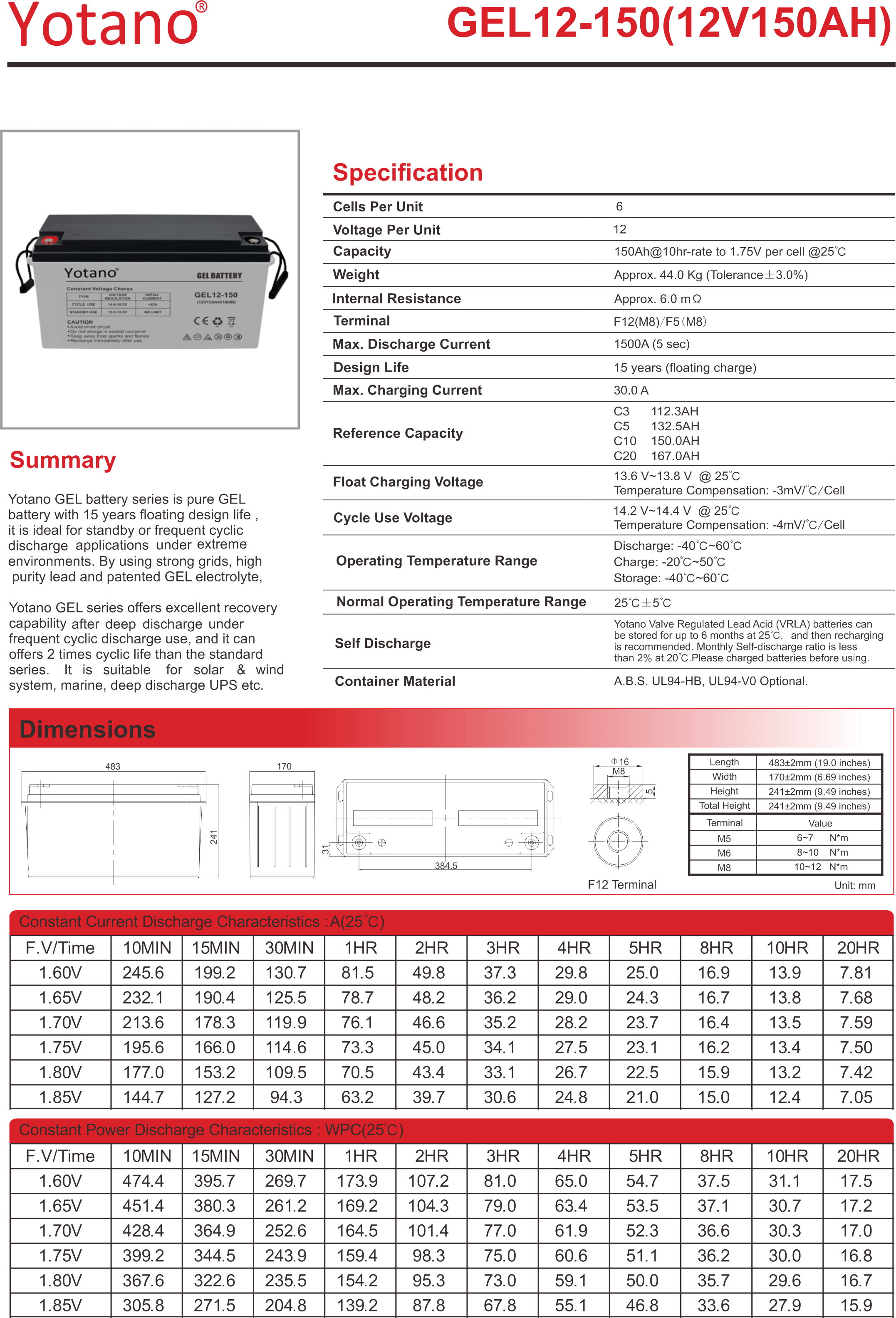 - Battery Model: GEL12-150/ 12V150AH