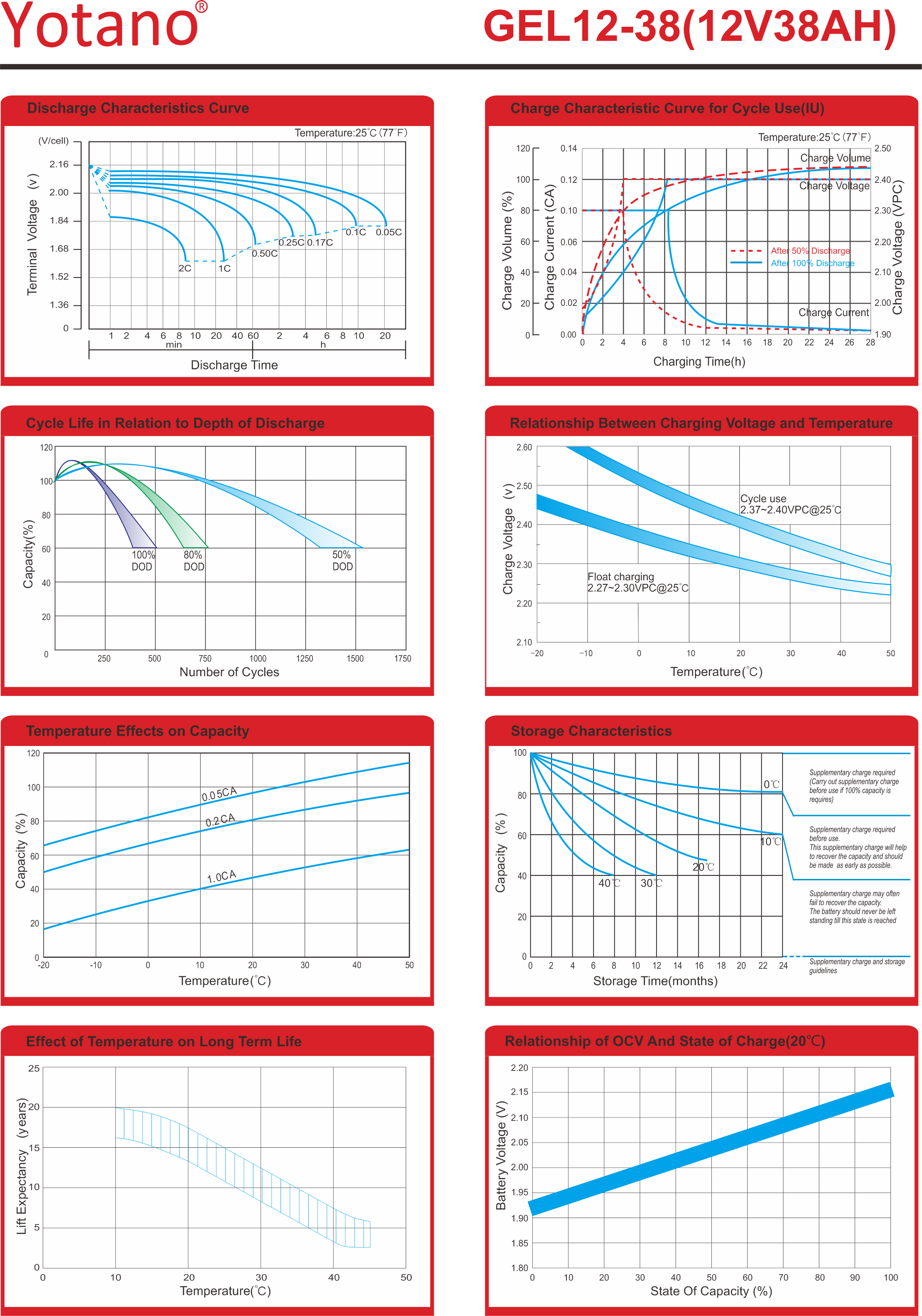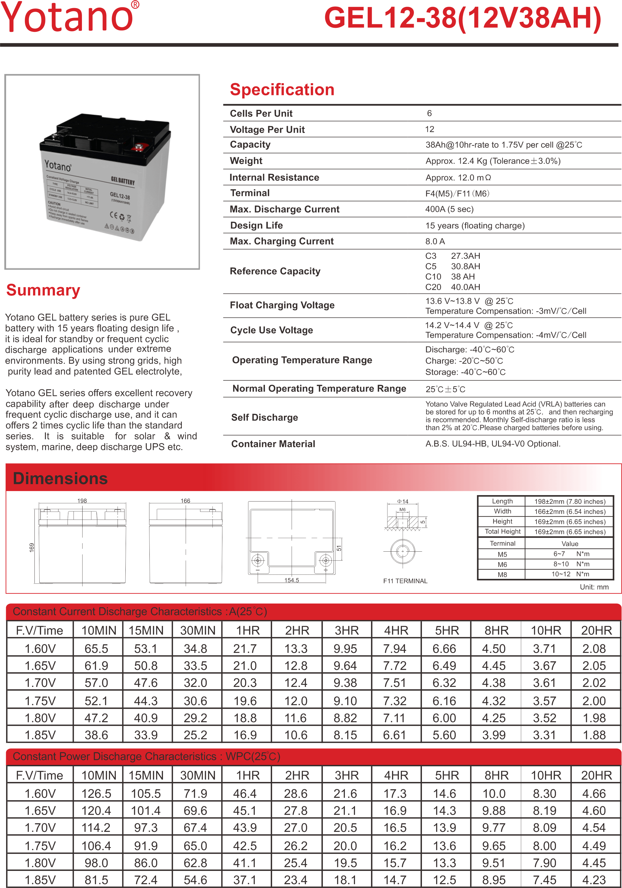 Yotano GEL battery series is pure GEL battery with 15 years floating design life ,it is ideal for standby or frequent cyclic