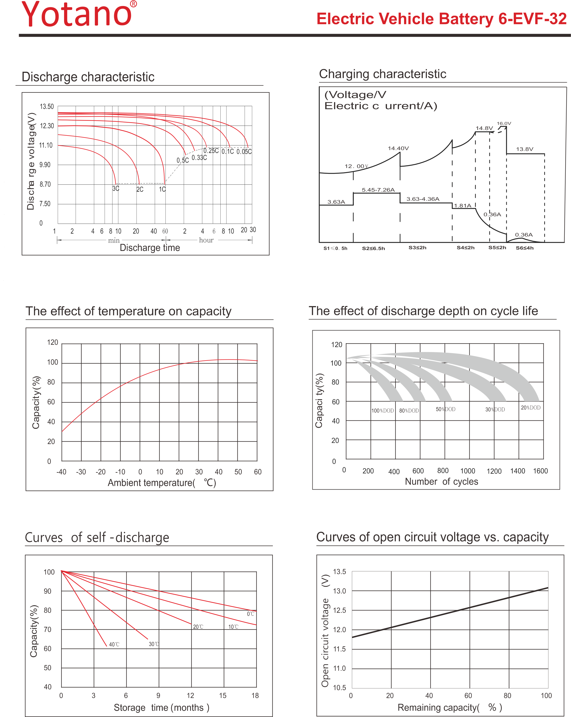 Yotano E-bike series batteries is lead acid battery, The rated capacity is range from 12Ah to 65AH. The battery capacity is normally based on 2 hour rate and 3 hour rate.